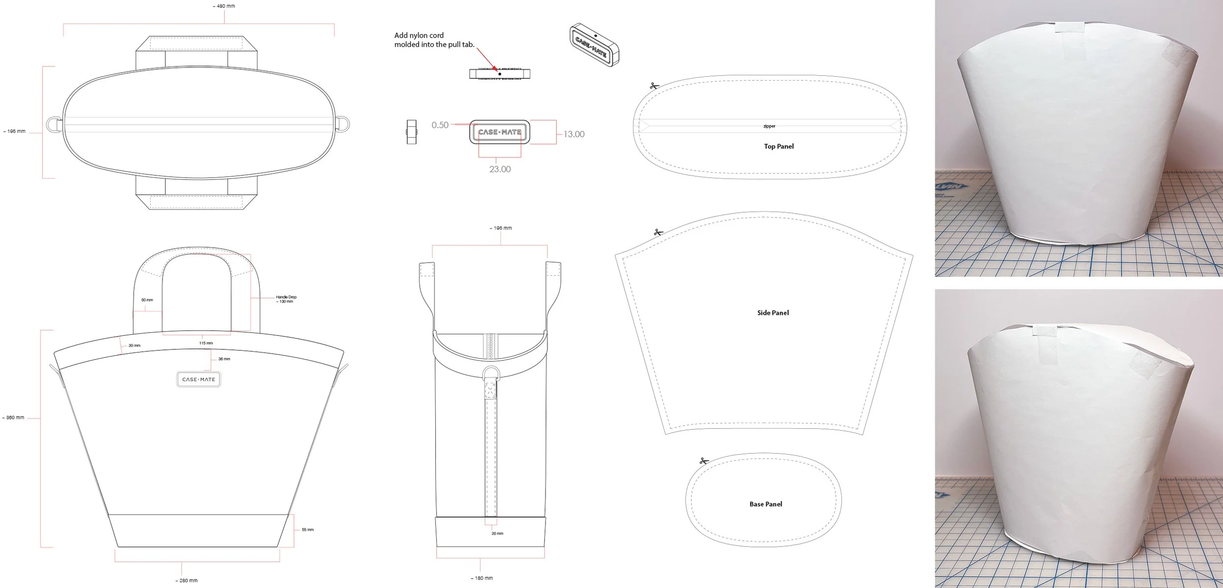 Once the team was happy with sketches and paper prototypes, I used Solidworks to create 3D CAD that could be unrolled into sewing patterns.